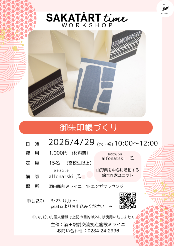 【庄内イベント情報4/29】大人向けワークショップ「御朱印帳づくり」(酒田市)