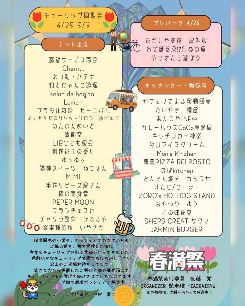 【庄内イベント情報4/25-26】春満祭とチューリップ観覧会2026(鶴岡市)