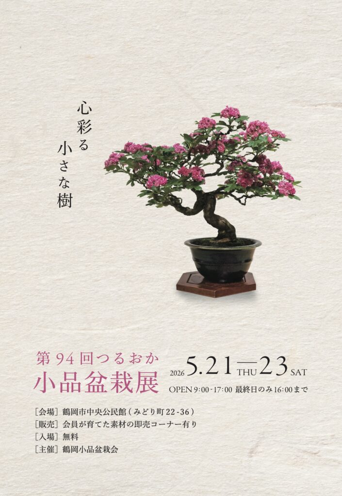2026年5月21日(木)から23日(土)に、鶴岡市で「第94回つるおか小品盆栽展」が開催されます。