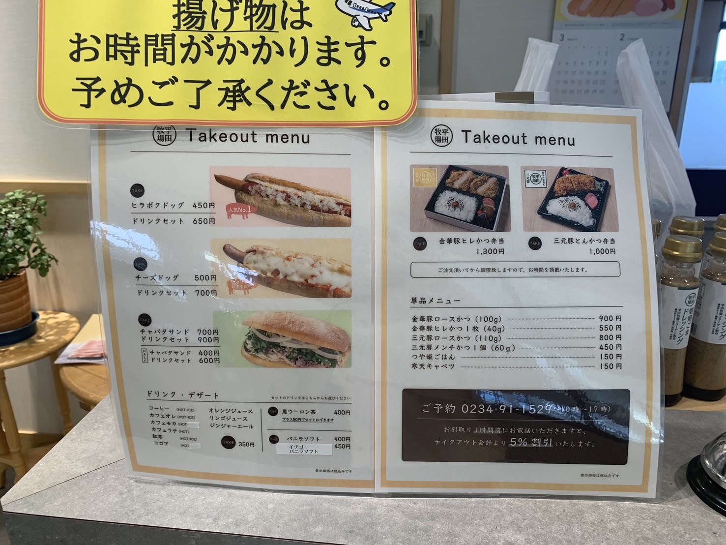 平田牧場庄内空港店では、テイクアウトも可能です。