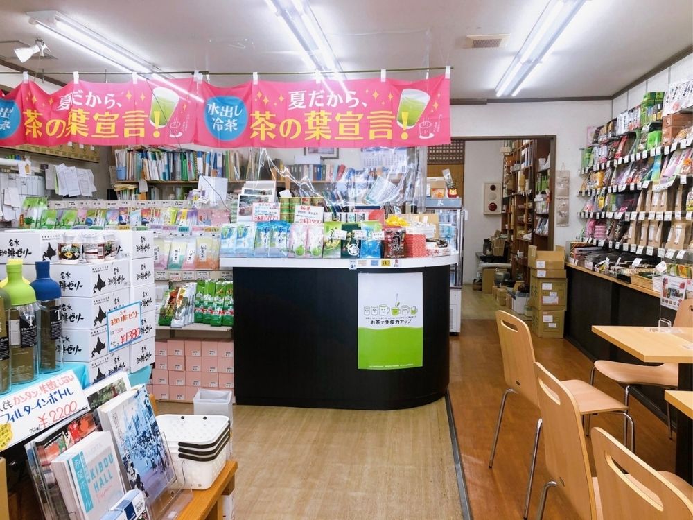 店内には様々なお茶商品が並んでいます。