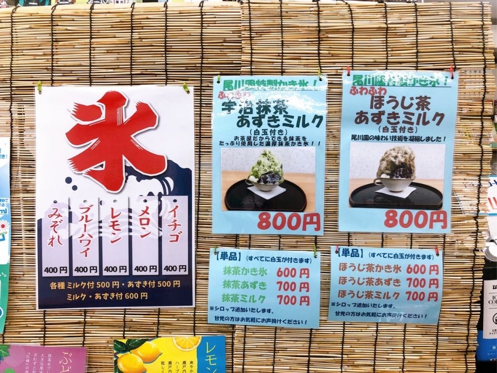 2.尾川園のかき氷メニュー