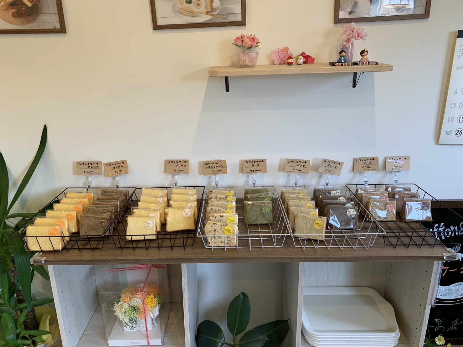 森のケーキ屋さんでは、数種類の味のシフォンケーキやシフォンケーキサンドを売っています。