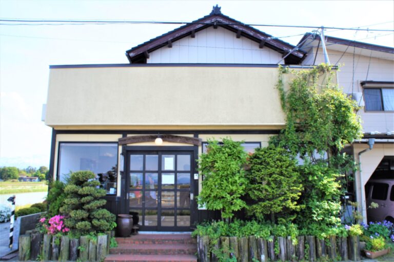 お店の前に広がる田園風景の先に鳥海山が一望できるのも素敵です。