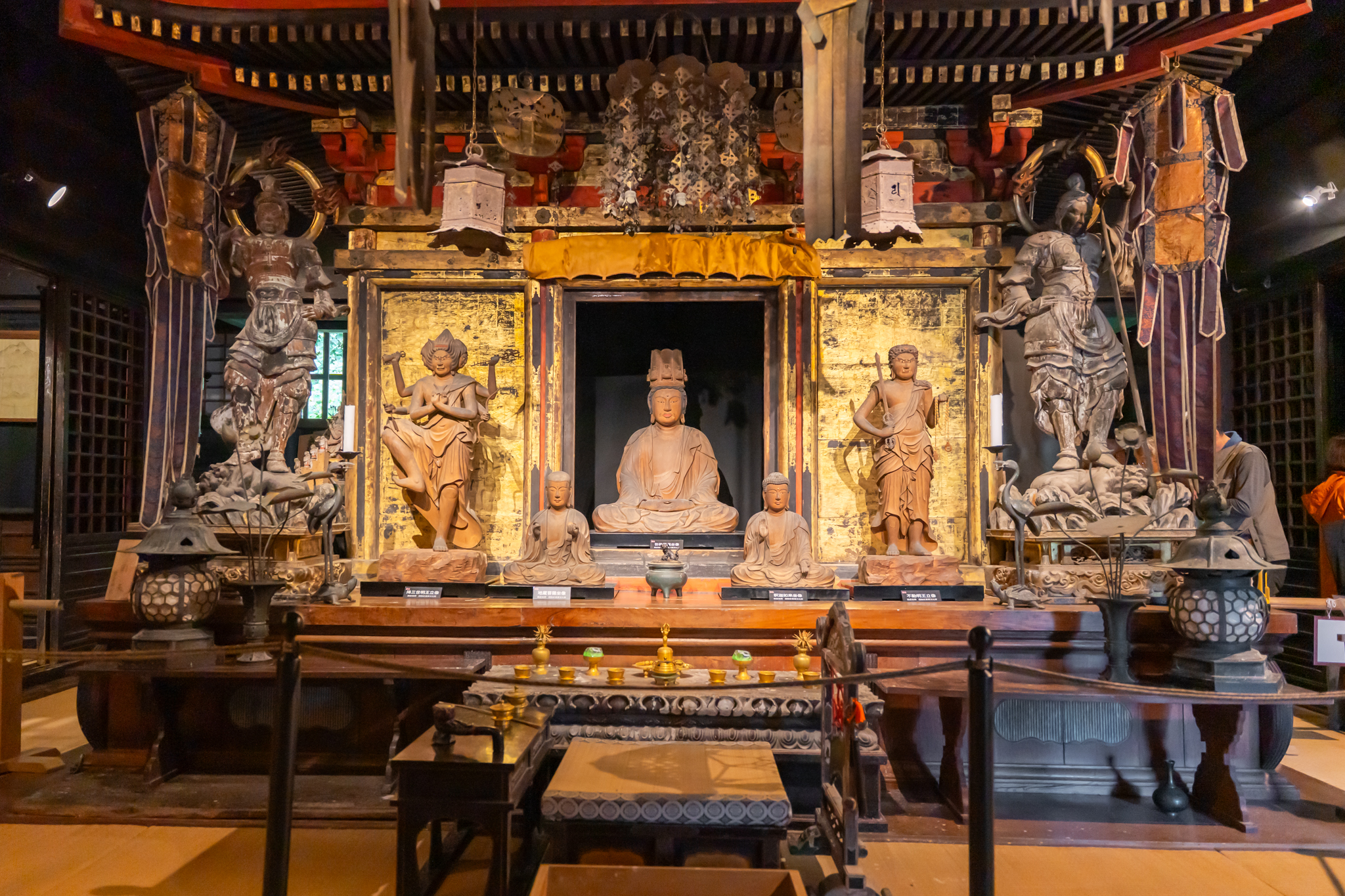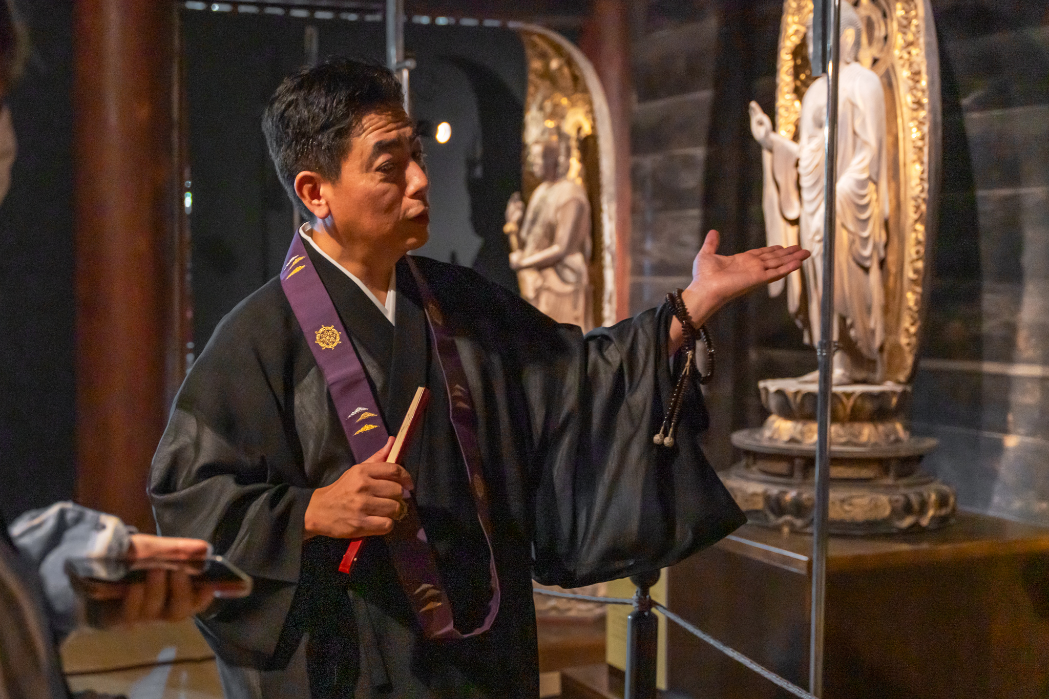 静かな堂内で、光に浮かび上がる仏像の姿は息をのむほど神秘的。