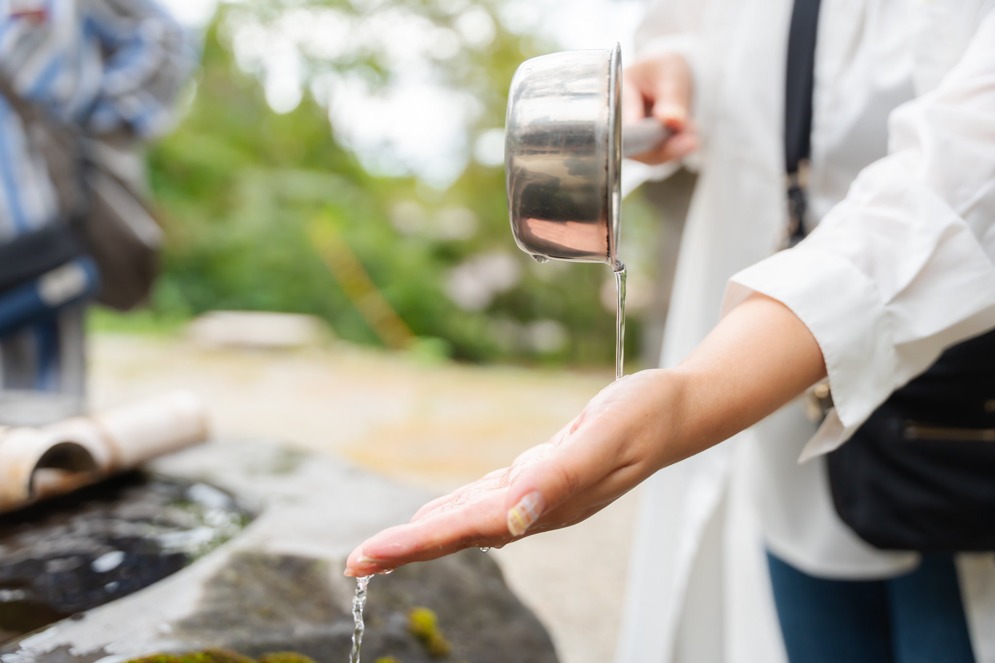 まずはこちらの山門を通り、手水で身も心も清めます。