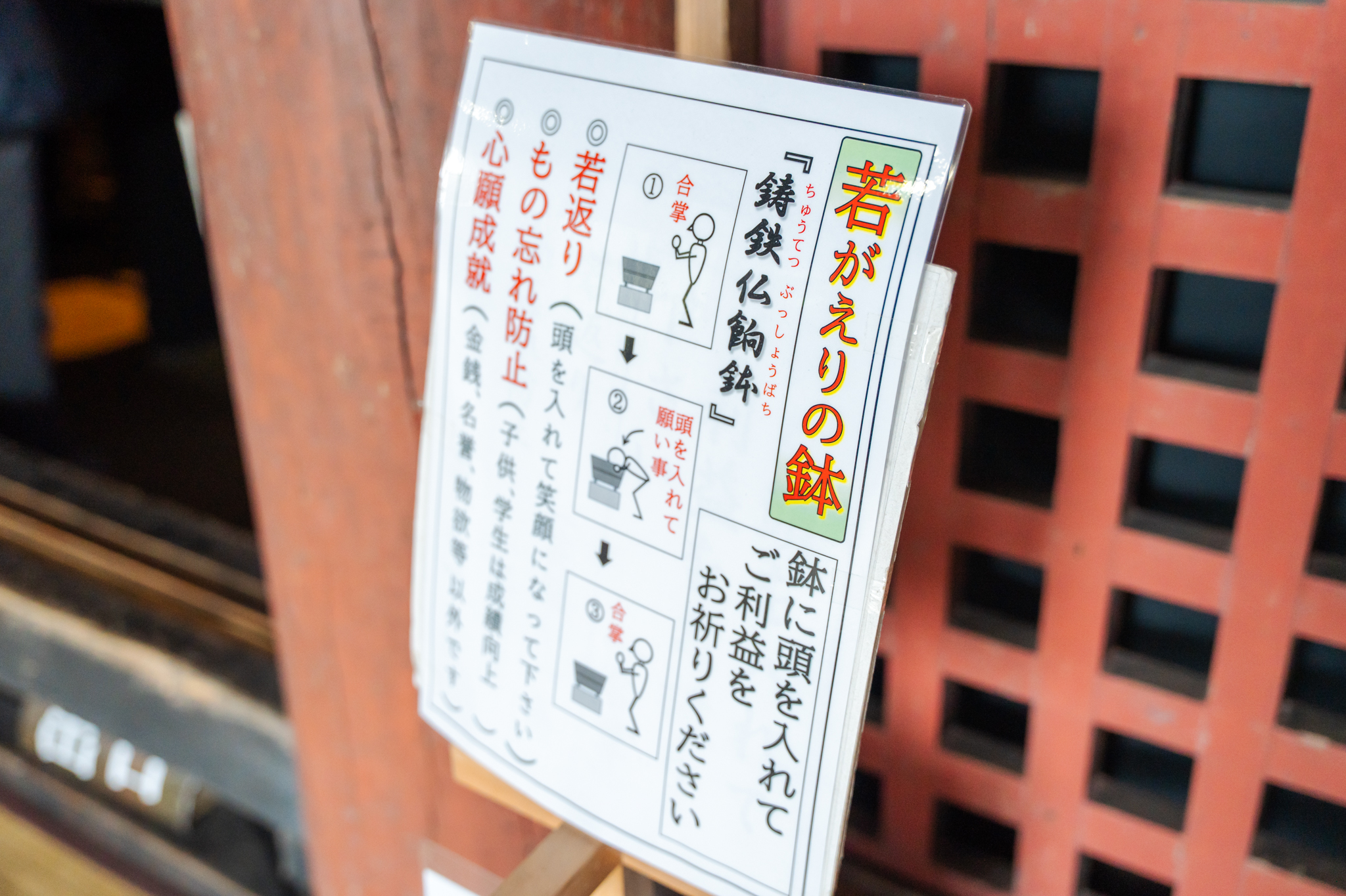 この鉢に頭を入れると、若返りや物忘れ防止、さらには学業成就や美人になるご利益があるのだとか!