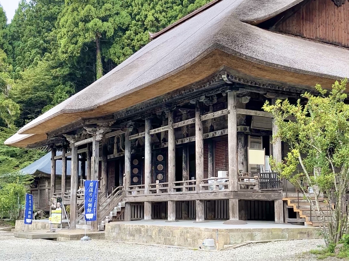 秋の御開帳が待つのは、存在感あふれる茅葺き屋根の本堂。