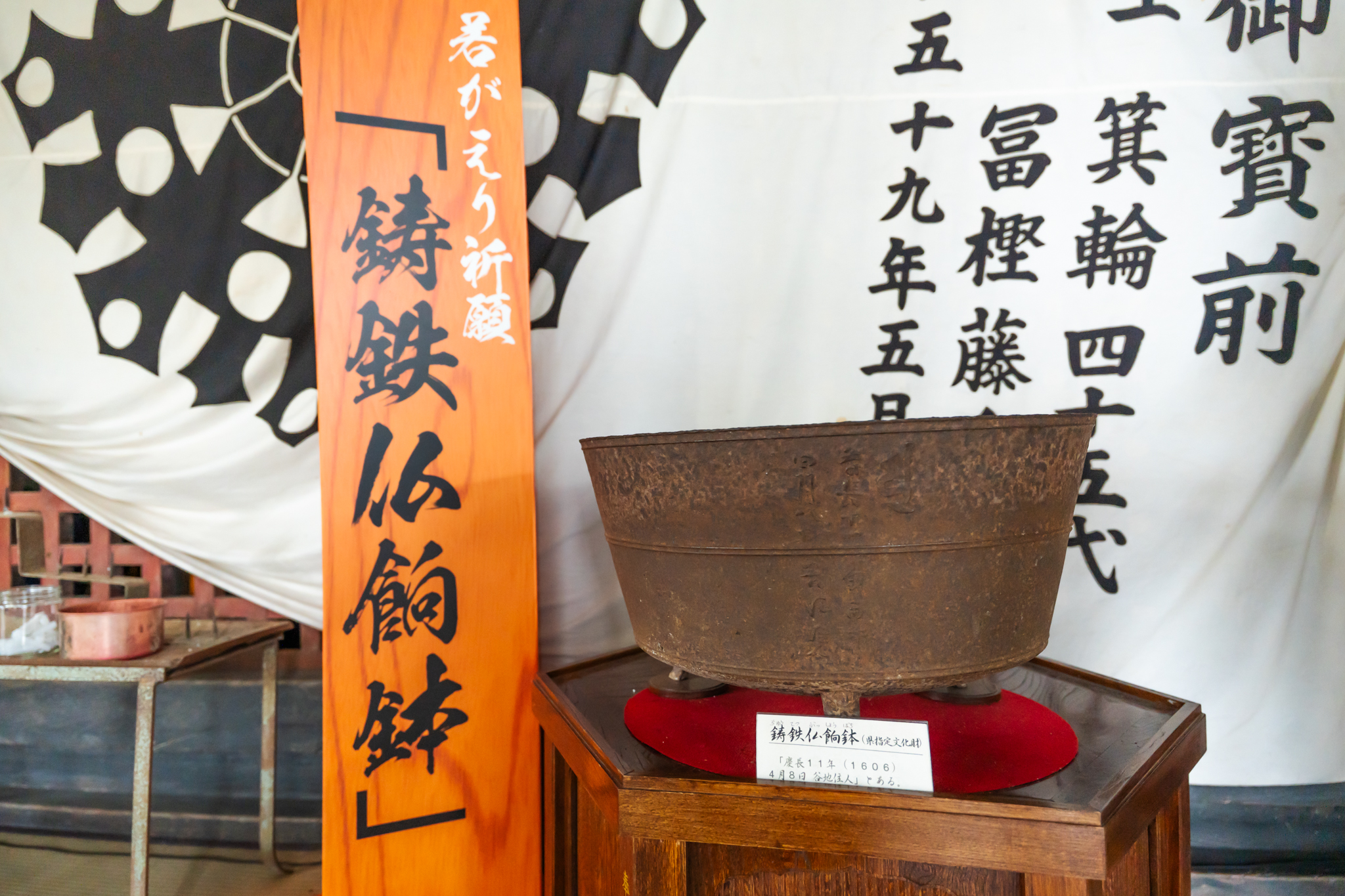本堂の中には「鋳鉄仏餉鉢(ちゅうてつぶっしょうばち)」という珍しい仏具が納められています。