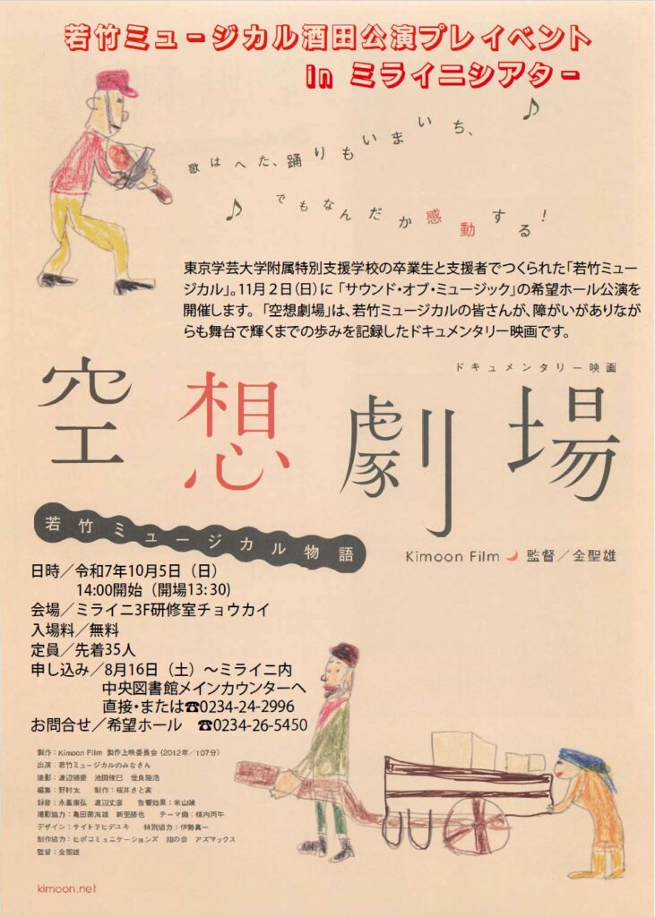 本イベントでは、11月2日(日)に上演予定の若竹ミュージカル本公演を前に、ドキュメンタリー映画 『空想劇場』 を無料上映。若竹ミュージカルの舞台裏や、情熱を持って活動するメンバーたちの姿を映した作品です。